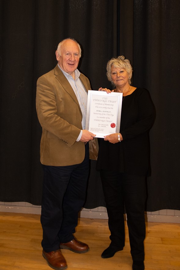At our monthly Open Meeting on Tuesday 11th March, Andrew Wilson on the Kelso branch and national Third Age Trust committee member, presented us with our official Certificate of Membership of the Third Age Trust.